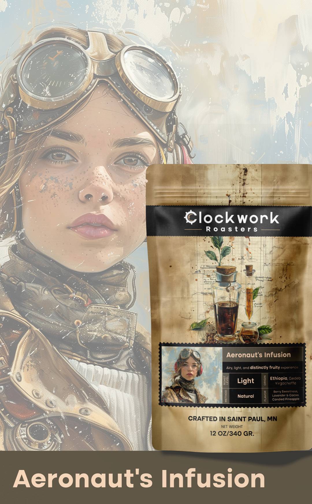Aeronaut's Infusion: Rare Ethiopian beans with delicate berry sweetness and hints of lavender. More towards the "specialty".